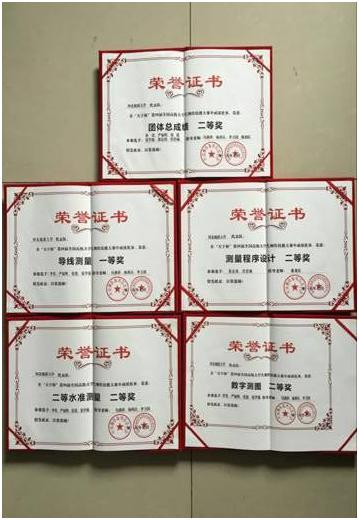 2016年8月2日—8月4日,“天宇杯”第四届全国高等学校大学生测绘技能大赛在内蒙古农业大学举行,我院参赛队伍获团体二等奖,其中导线测量一等奖,测量程序设计、数字测图,水准测量二等奖。