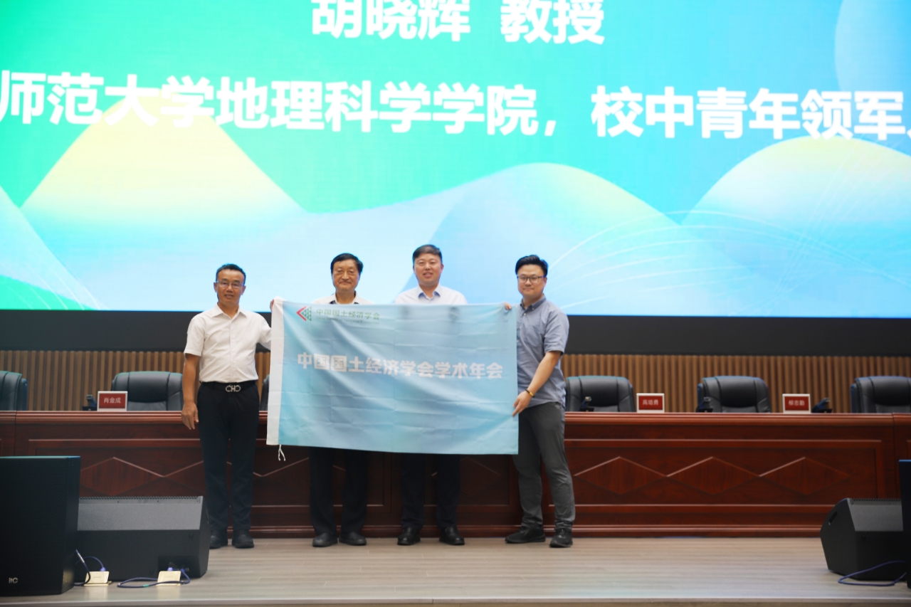 朱骥教授与南京师范大学地理科学学院胡晓辉教授完成会旗交接仪式。
