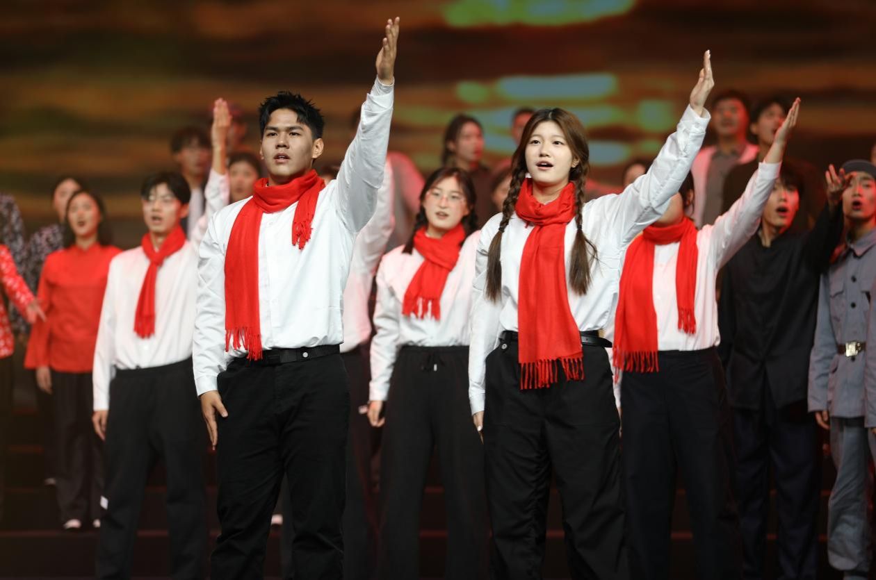 代表队受邀演出合唱作品《珊瑚颂》。在教师刘瑾洁、焦荣炫的指导下,同学们以清澈而坚定的声线,层层递进的和声编排,深情诠释了歌曲中蕴含的坚韧不拔、纯洁崇高的精神意象,将经典红色旋律与当代青年的爱国情怀融为一体,传递出新时代大学生对祖国的无限热爱和对国防事业的青年担当,深深打动了现场评委与观众。