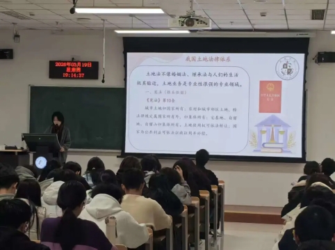 对于与我院专业紧密相关的土地法律规范,她重点讲解了相应的核心内容,明确了土地所有权归属的核心规定,对《土地管理法》《民法典》《城市房地产管理法》《农村土地承包法》等核心法律的关键条文进行了详细解读,帮助同学们搭建起专业与法律深度融合的知识框架,夯实了同学们在土地领域的法治基础。
