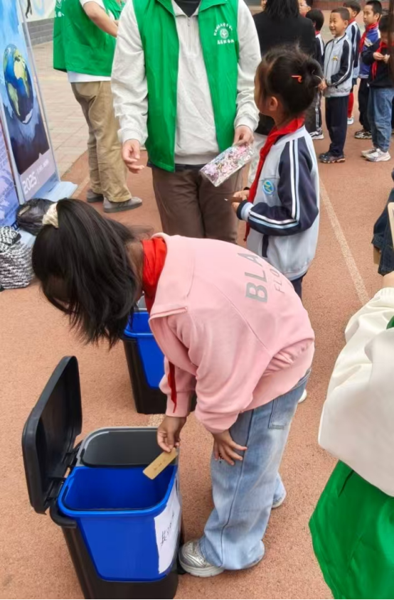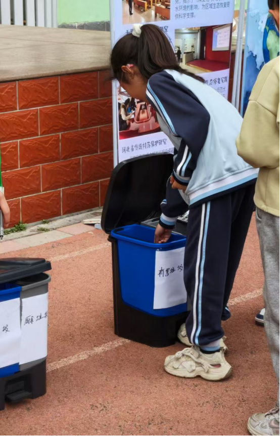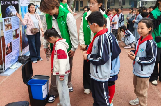 在环保趣味闯关环节,“环保知识大挑战” 中,孩子们踊跃举手答题,每一次响亮的回答都收获了鼓励的贴纸,答错的题目也由科普团成员耐心讲解,让知识真正入脑入心;“垃圾分类小能手” 游戏里,孩子们化身分类小达人,认真识别手中的垃圾卡片,将它们精准投放至对应分类垃圾桶,在游戏中掌握了垃圾分类的技巧;“防灾知识问答赛” 则以趣味跳跃作答的形式开展,孩子们随着 “是”“否” 的指令左右跳跃,在紧张又欢乐的氛围中,把防灾减灾的知识点牢牢记在了心里。