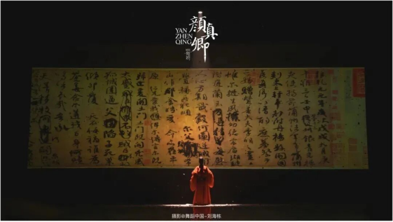 舞台之上,创意巧思令人惊艳。翩跹起舞间,将《祭侄文稿》的笔墨气韵与颜真卿跌宕起伏的人生轨迹完美交融。翎羽轻扬如秋荻摇曳,“国破山河在”的苍凉意境宛在目前。刚劲舞姿兼具书法灵动与历史厚重,每一个动作都直击人心,让观众在舞蹈中体会悲愤与坚守。