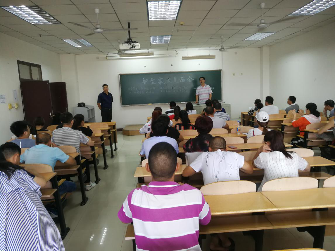 9月2日、3日上午,我院2018级迎新工作暨新生家长见面会在北校区图书馆405教室分批次召开。学院副书记王辉老师、辅导员杨宝清老师参加了见面会。
