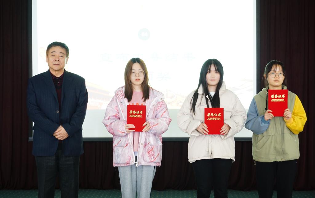 个人比赛一等奖:刘哲清;二等奖:张万佳、刘雅坤;三等奖:朱梦涵、豆子翔、董杰;最佳风采奖:吴美达、冯丽楠、张建宇、王畅达、朴慧英、达娃卓嘎。团体比赛一等奖:经济学院团体、二等奖:主播视频