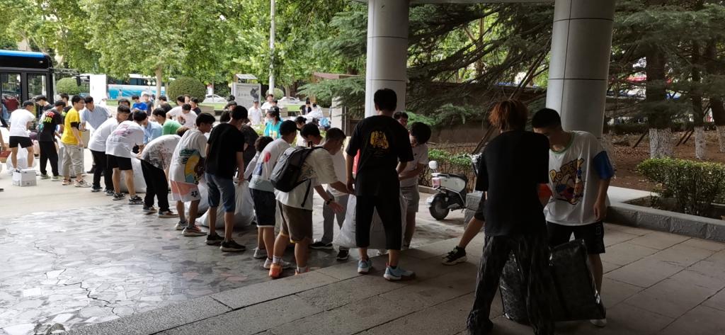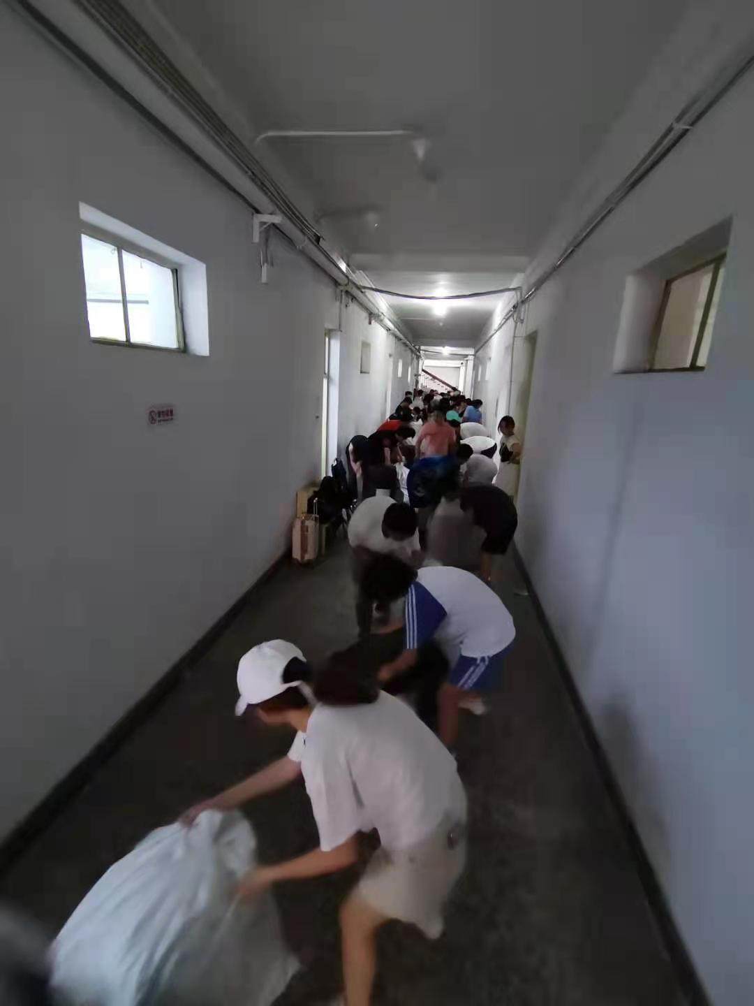 学生互帮互助的优良院风。到达本部后,李光书记亲自指导学生们卸载行李,采用“接龙传递”的方式,使卸载搬运工作高效、省力、有序进行。