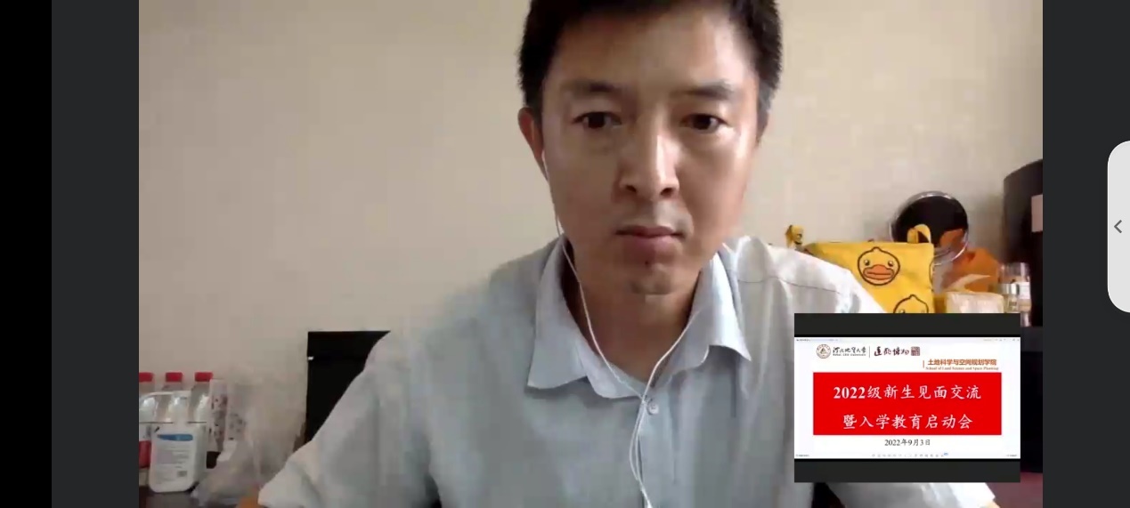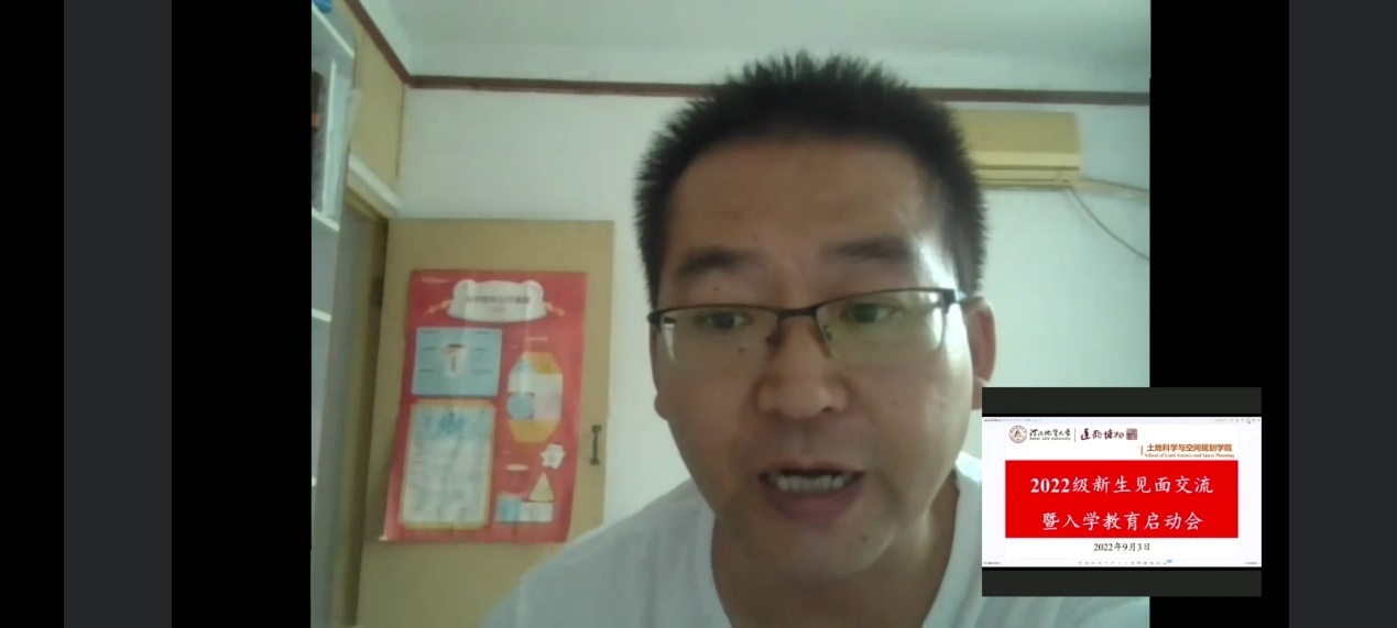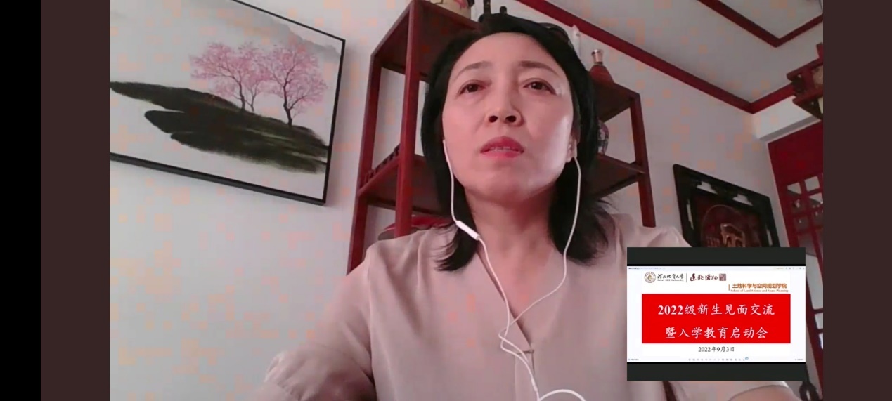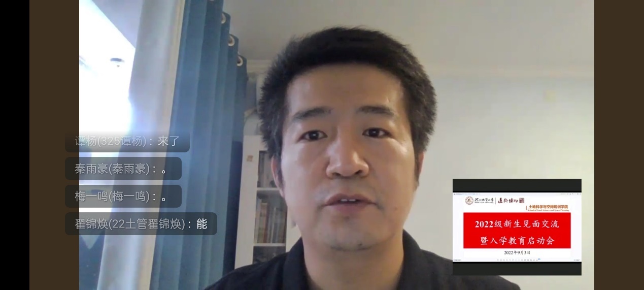 院长尚国琲、党委书记白翠玲、副院长朱骥、副院长史铁丑、测绘工程教研室主任陈艳红、地理信息科学教研室主任李镇、遥感科学与技术教研室主任张霞、城乡规划教研室陈丽红、土地资源管理教研室闫海明、土地整治工程教研室于淑会、团委书记王莉及2022级辅导员杨宝清、李炜与22级全体新生和家长相聚云端,举行2022级新生见面交流暨入学教育启动会,会议由党委副书记李光主持。