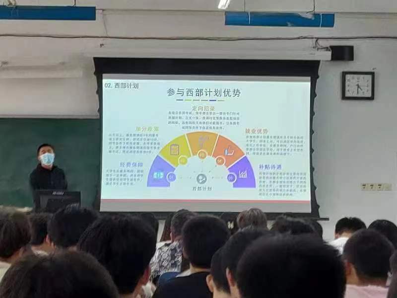 于2023年5月10日在教一102开展了“西部计划宣讲会”活动,19级测绘、遥感、土整全体学生参与会议。