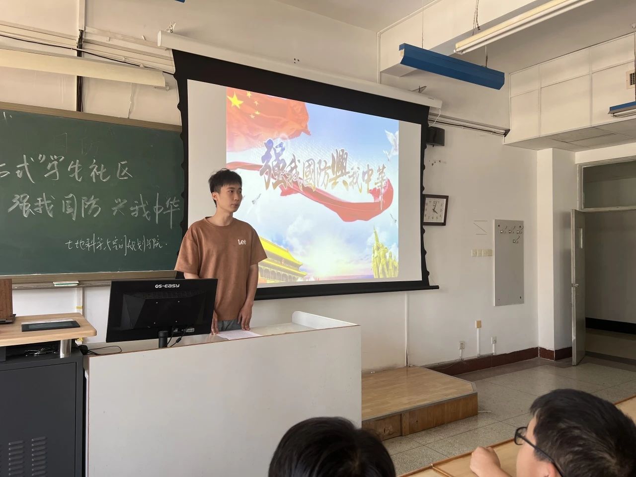 为了宣传新时代拥军优属、拥政爱民、军政军民团结的血肉联系和鱼水深情,大力培育以爱国主义为核心的伟大民族精神,强化“强国必须强军,军强才能国安”的意识。使关心国防、热爱国防、建设国防、保卫国防成为师生的思想共识和自觉行动。9月14日,我院在教一701开展了本次国防教育主题座谈会,并邀请了束浩楠、覃皓文两位退伍同学来与大家分享他们的亲身经历。