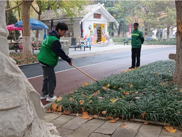 活动开始,同学们身穿志愿者马甲,手持清洁用具,分散到公园的草地、花丛、小径、湖边等各个角落,认真投入到公园卫生清理工作中。志愿者们分工清晰、协作有序,细致入微地清扫卫生死角,精心拾捡地上的果皮、纸屑、杂草树枝等杂物,整个清扫活动持续2小时,形成了一道亮丽的风景线。