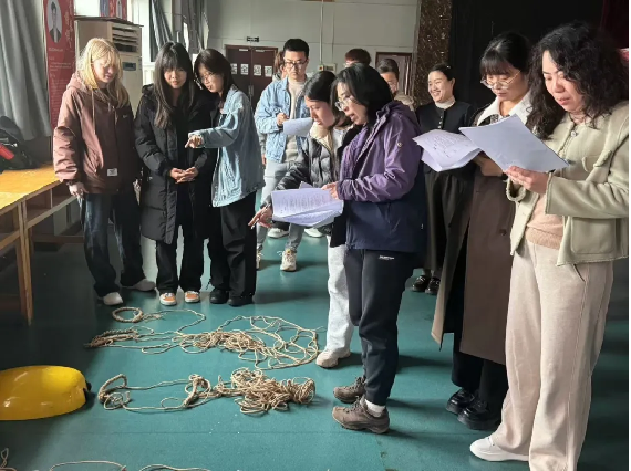紧接着,同学们又投身于软绳梯制作技艺的比拼中。一根根绳索在他们手中灵活穿梭,精心编织成既美观又实用的软绳梯。这一环节不仅是对同学们动手能力的考验,更是对他们团队协作精神的一次全面考察。
