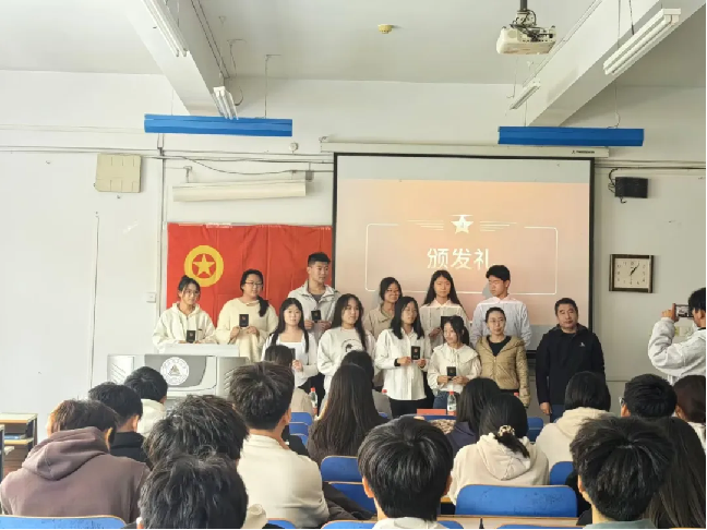辅导员于淑会、齐志国为新团员颁发团徽与团员证。新团员们将团徽郑重地佩戴在胸前,眼神中洋溢着自豪之情。