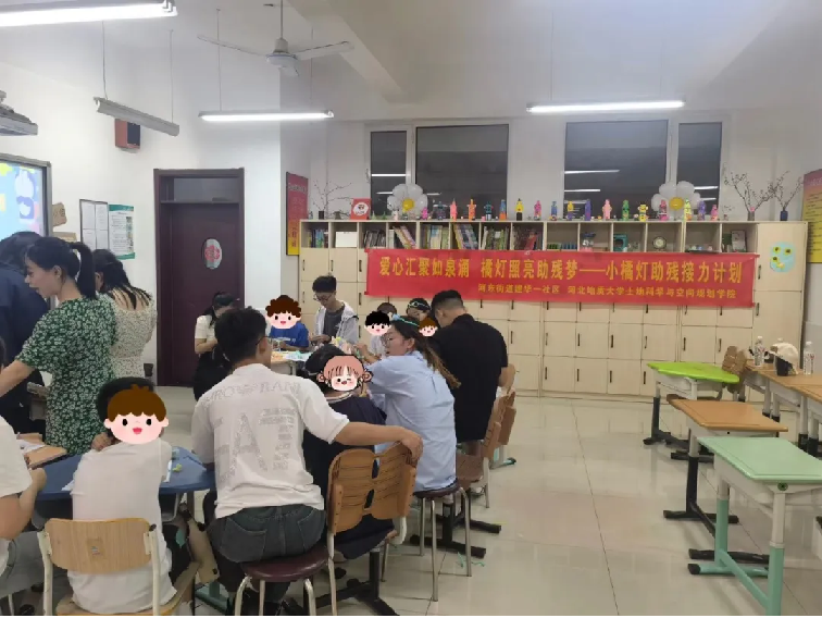 团委联合石家庄市长安区河东街道建华第一社区,于2024年6月13日下午在石家庄市长安区特殊学校举办了“爱心汇聚如泉涌,橘灯照亮助残梦——小橘灯助残接力计划”助残活动。带领开展本次社会实践活动的是王莉老师,成员有王忱瑶、鲍彦迪等八位团委成员。