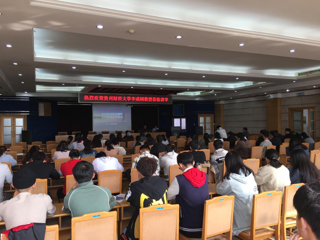 2019年10月20日,我校校友贵州财经大学科研处副处长李成刚教授回母校讲学,并与我院师生深度对话和交流。李成刚教授于2006—2009年在我校攻读硕士研究生学位,师从我校尚国琲教授。报告会由土地资源与城乡规划学院尚国琲院长主持,我院二年级本科生及部分教师参加了报告会。