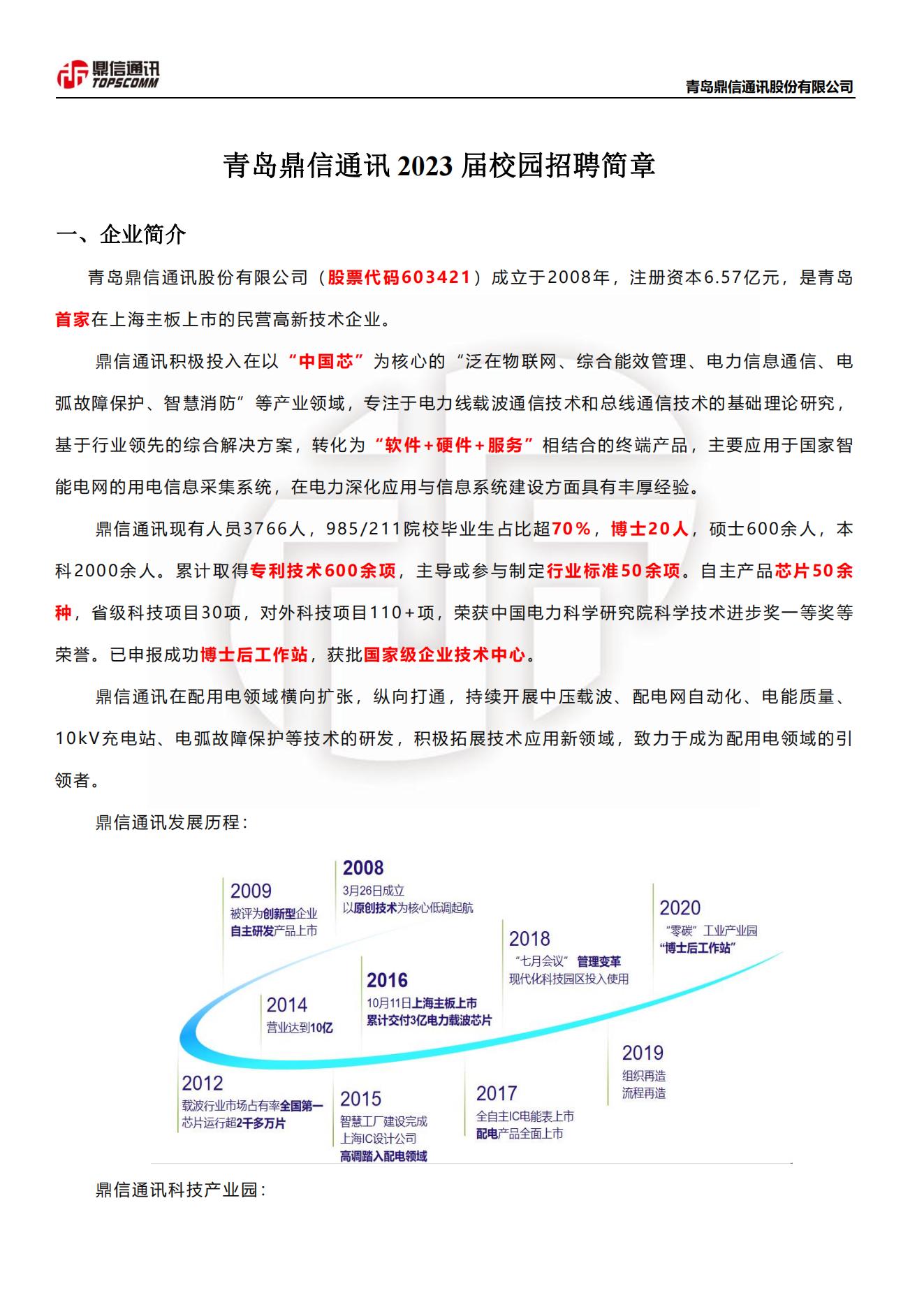 【招聘信息】青岛鼎信通讯股份有限公司2023届校园招聘(河北)