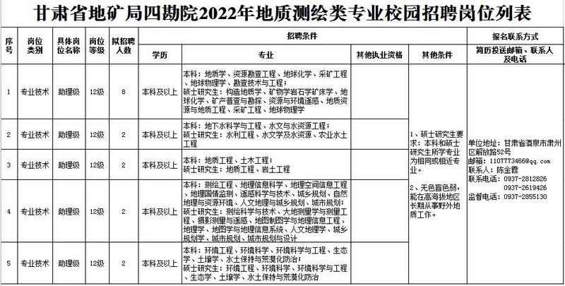 甘肃省地矿局2022年地质测绘类专业校园招聘公告