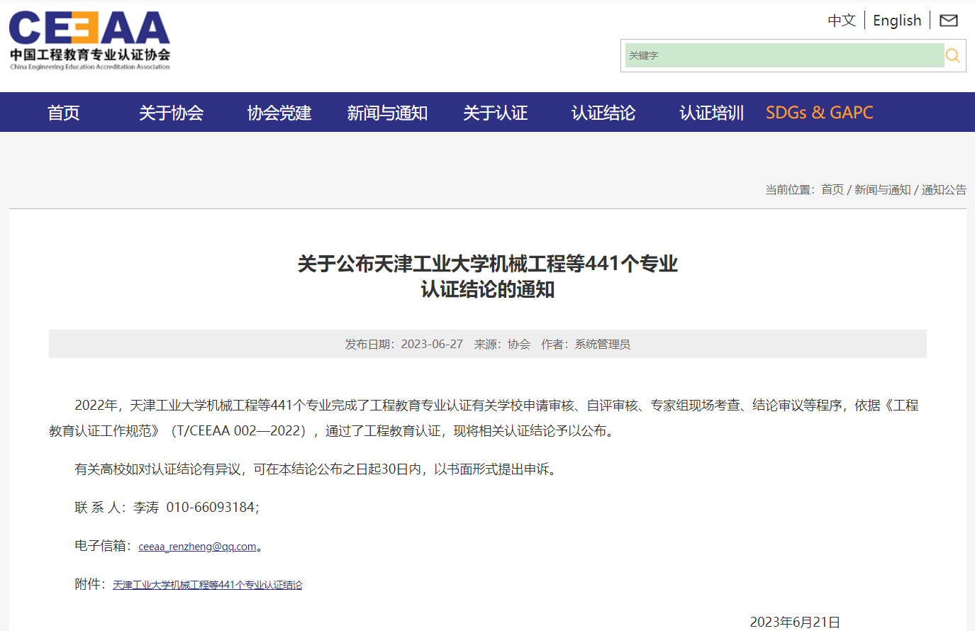 2023年6月27日,中国工程教育专业认证协会发布了2022年全国工程教育认证结论,我院测绘工程专业通过认证,有效期为六年,自2023年1月至2028年12月。
