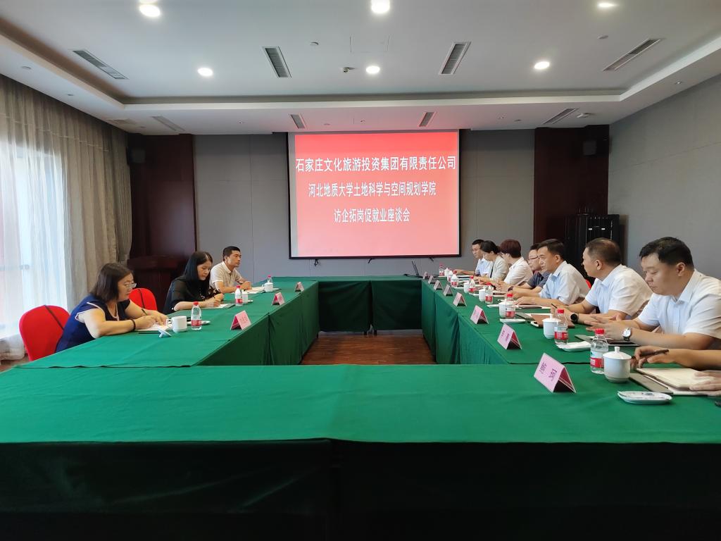 党委书记白翠玲、党委副书记李光、城乡规划教研室刘宏娟老师赴石家庄文化旅游投资集团有限责任公司开展“访企拓岗促就业”专项行动。石家庄文化旅游投资集团有限责任公司党委副书记、副董事长、总经理秘勇,党委副书记、董事、工会主席陈刚,党委委员、总法律顾问易灿辉,副董事长、总经理李菁,党委办公室主任王春影,规划发展部副部长鲍珂,滹沱河景区开发有限责任公司党委副书记、副董事长、总经理王雅然,党委办公室尹家昕等出席座谈会。