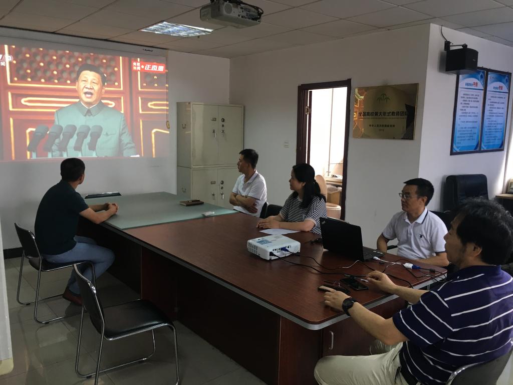 奋斗百年路 启航新征程,庆祝中国共产党成立100周年大会今天上午8时在北京天安门广场隆重举行,中共中央总书记、国家主席、中央军委主席习近平发表重要讲话。我院师生分别在综合楼606、教一102、104、105集体收听收看中国共产党成立100周年庆祝大会直播。