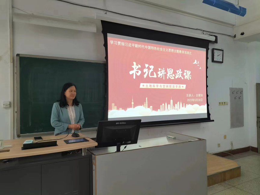 为深入开展学习贯彻习近平新时代中国特色社会主义思想主题教育,坚持知识传授与价值引领相结合,推动专业课程与思政课程相协同,构建协同育人新格局。5月30日,我院党委书记白翠玲面向21级城乡规划、土地资源管理、测绘工程、遥感信息技术、地理信息科学等专业的入党积极分子、团学骨干及全体班委在教一102讲授了一堂别开生面的思政课。