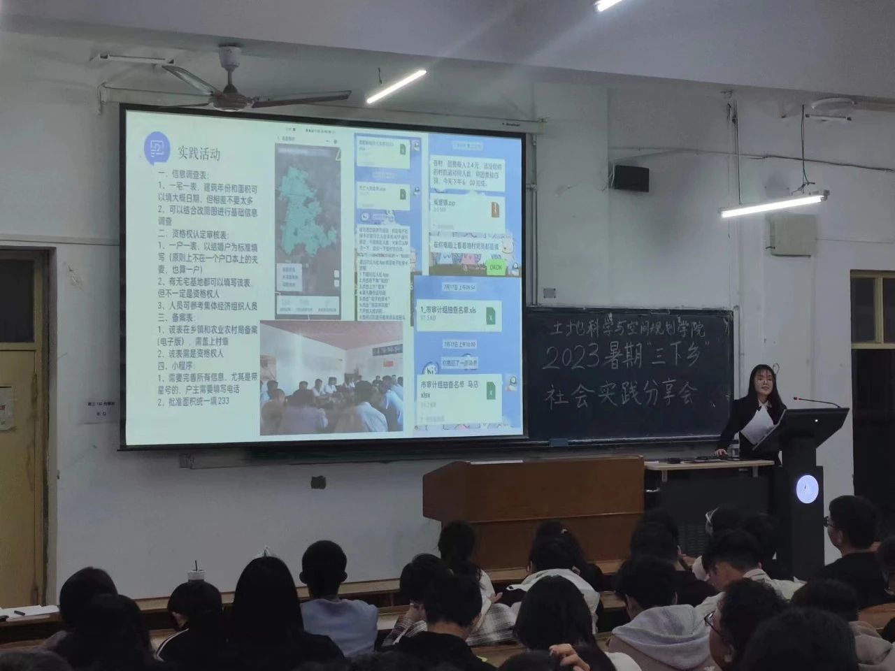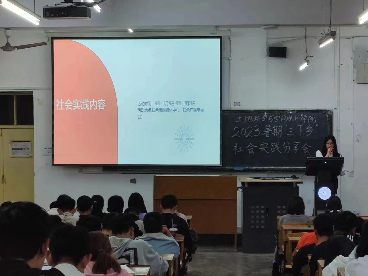 为激励同学们积极参与社会实践,发扬踏实奋斗精神,引导青年团员在实践中厚植对祖国血浓于水,与人民同呼吸共命运的情感,激励同学们积极参与社会实践活动,我院团委于2023年10月25日在校本部教三102开展了本次2023暑期“三下乡”社会实践活动分享会。