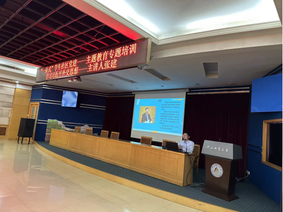 为了贯彻落实党的二十大精神,认真学习习近平外交思想,推动“一站式”学生社区党建工作开展,11月27日14:30在教一楼9楼学术报告厅举行了“一站式”学生社区党建主题教育专题培训——“学习习近平外交思想”主题讲座,本次讲座邀请到了外交学院外交学系张建副教授,主播视频