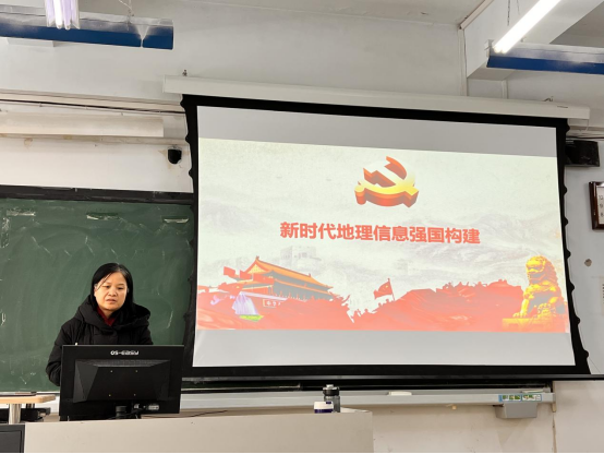 党委书记白翠玲书记于12月18日在教一201以“新时代地理信息强国构建”为主题讲授思政课,2022级全部积极分子与地理信息科学专业同学参加。